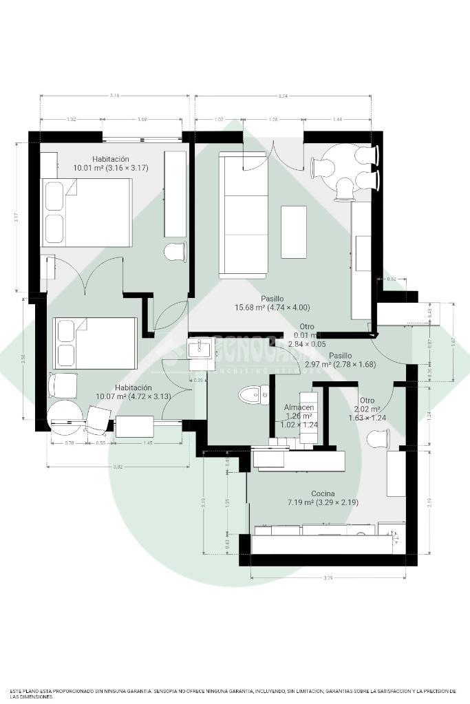 Dispone de dos dormitorios con armarios empotrados, diseñados para maximizar el espacio de almacenaje, y un baño completo con plato de ducha. Como valor añadido, la vivienda incluye una despensa con posibilidad de habilitar un aseo adicional, gracias a que dispone de bajantes, lo que ofrece un interesante potencial de mejora.